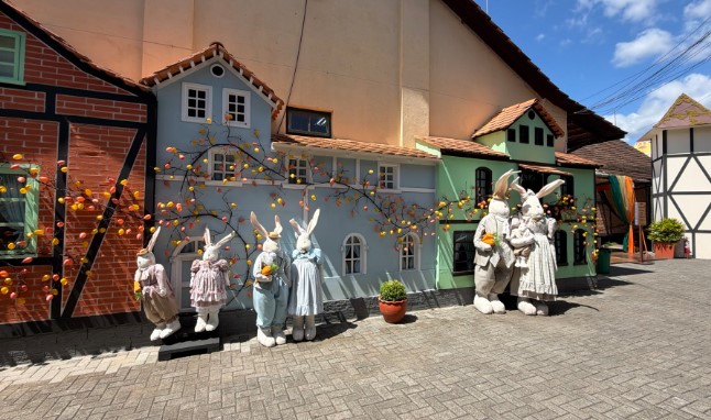 Entre os destaques que chamam a atenção do público está a maior árvore de Páscoa do Brasil, formada por cerca de 105 mil casquinhas naturais pintadas à mão. As cores vibrantes e o cuidado nos detalhes transformam a estrutura em um dos principais cartões-postais do evento.