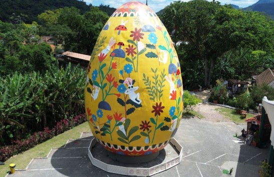 Outro ícone é o ovo gigante, com 16 metros de altura, reconhecido pelo Guinness World Records. A estrutura cresce a cada edição, resultado do envolvimento da comunidade local, que participa ativamente da montagem e da evolução do monumento.