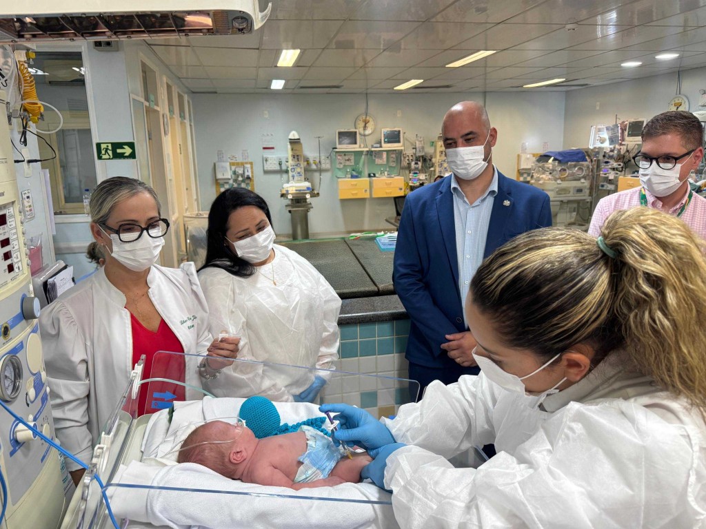 O paciente foi Anthoni Machado Kniess Rohden, de apenas dois meses de vida. Nascido com 25 semanas de gestação, ele integra o grupo prioritário definido pelo Ministério da Saúde e pela Secretaria de Estado da Saúde (SES), composto por crianças com maior risco de complicações respiratórias.