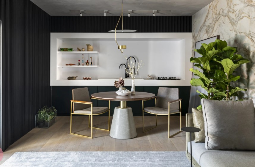 Em cozinhas e ilhas gourmet, o material costuma ganhar protagonismo nas bancadas. Nesses casos, a impermeabilização é indispensável, já que líquidos como café, vinho e óleo podem causar manchas. Banheiros, escadas, mesas e até detalhes decorativos, como nichos e tampos pontuais, também se beneficiam da estética da pedra. Em áreas de maior circulação, o acabamento fosco pode ser uma escolha mais segura por oferecer melhor aderência.