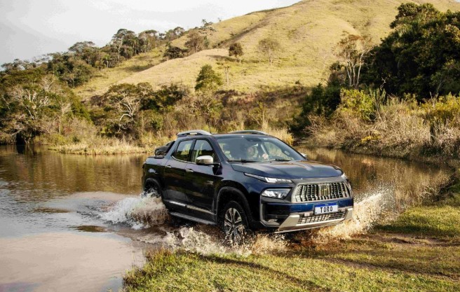 No interior, a evolução também foi evidente. A picape incorporou novas centrais multimídia com disposição vertical, ampliou os recursos de conectividade e passou a oferecer sistemas de assistência à condução, incluindo frenagem autônoma e controle de estabilidade. O conjunto tecnológico posicionou a Toro entre as mais completas da categoria.