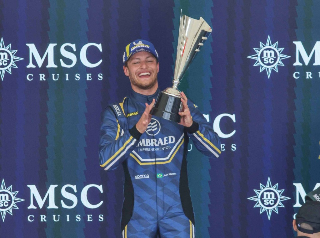 Natural de Criciúma e morando em Balneário Camboriú, Jeff está em uma excelente fase e tem muito o que comemorar neste início de novembro. Além da conquista na Porsche Cup neste domingo, fechou no último dia 3 patrocínio com a Embraed Construtora. Na vida pessoal, outro marco importante: se casou no dia 1º com a nutricionista e comissária de bordo Luisa Braun, que o acompanha na maioria das competições.