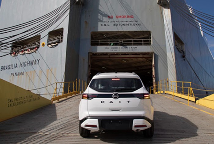 Após chegar por transporte terrestre no Paraguai, o SUV Kait, produzido no Complexo Industrial da Nissan em Resende, RJ, segue agora, por navio, para a Colômbia e Costa Rica. A meta da fabricante japonesa é exportar o novo modelo para 20 países da região, incluindo o México.