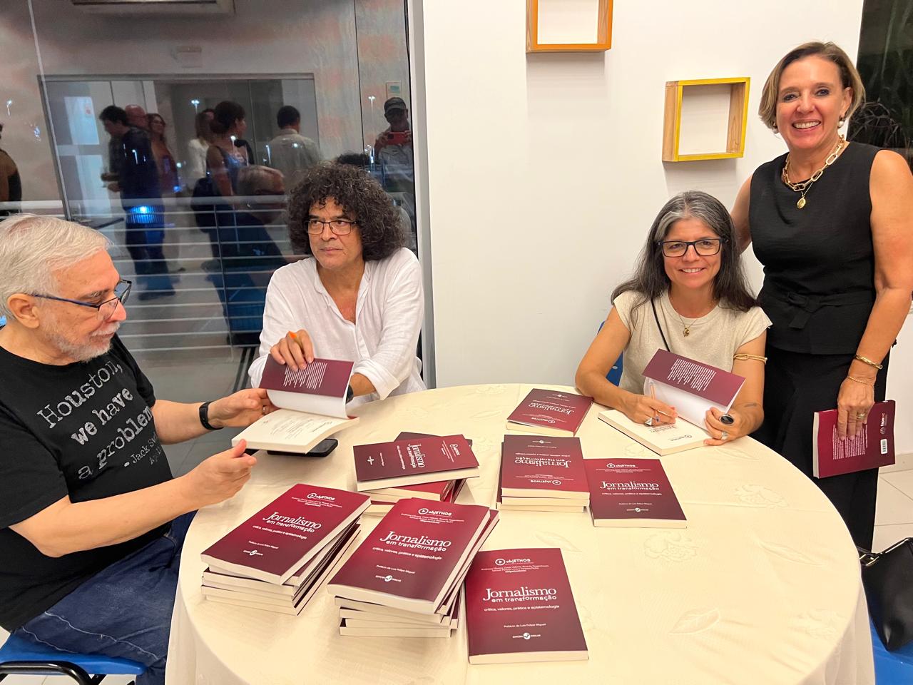 O evento marcou o lançamento do livro “Jornalismo em Transformação crítica valores prática e epistemologia”, uma obra coletiva que reúne 60 textos assinados por 31 profissionais da comunicação. A publicação foi organizada pelos pesquisadores do objETHOS Andressa Oliveira, Cesar Valente, Ricardo Fiegenbaum, Samuel Pantoja Lima e Vanessa Pedro, com prefácio do jornalista e professor da Universidade de Brasília, Luis Felipe Miguel, e edição da Editora Insular.