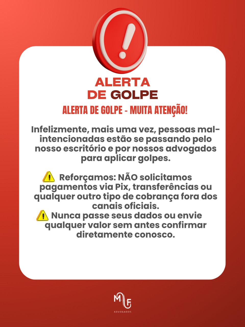 - Compartilhe este alerta e informe o escritório de seu advogado sobre possíveis tentativas de golpe.