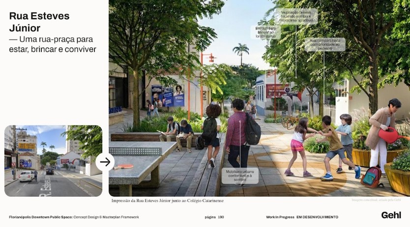 A Rua Esteves Júnior também integra o conjunto de propostas, com foco na criação de uma zona escolar. A região concentra grande fluxo de estudantes, com mais de 4,5 mil crianças e jovens circulando diariamente.