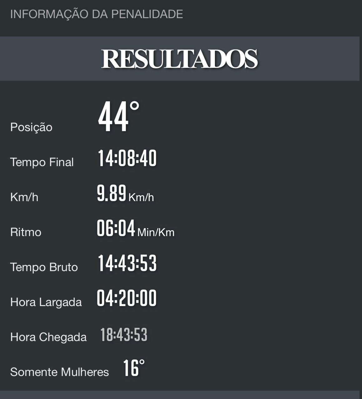 O tempo total de prova foi de 14h08min40s, com média de 9,89 km/h — números que refletem não apenas o preparo físico, mas também a organização e o entrosamento do grupo ao longo dos 19 trechos do percurso.