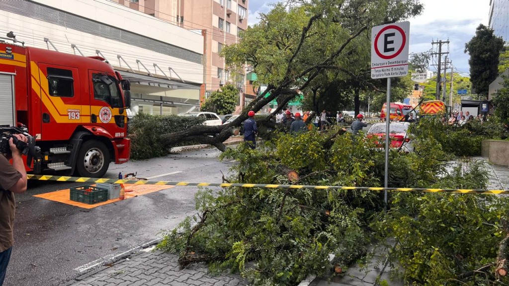 A ocorrência mais significativa foi registrada na Avenida Mauro Ramos, uma das principais vias de ligação da região central da capital. Uma árvore de grande porte caiu em frente ao Beiramar Shopping, bloqueando completamente a pista no sentido bairro–Centro e causando congestionamento por vários quarteirões. Equipes da Defesa Civil e da Secretaria Municipal de Meio Ambiente foram acionadas rapidamente para realizar o corte e a remoção da estrutura.