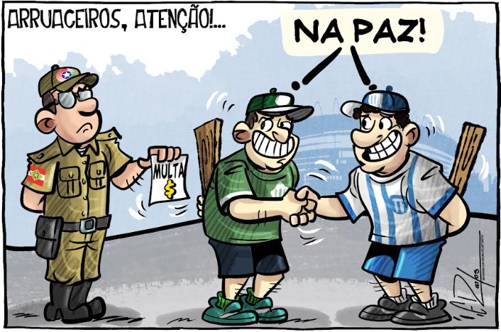 Agora há uma lei estadual (19.721, sancionada dia 21 de janeiro), mas se funcionar são outros quinhentos. Ela dispõe sobre a aplicação de sanções administrativas a pessoas envolvidas em brigas generalizadas relacionadas a eventos esportivos, realizadas dentro ou no entorno de estádios, ginásios, arenas e demais locais destinados à prática ou ao acompanhamento de atividades esportivas em SC.