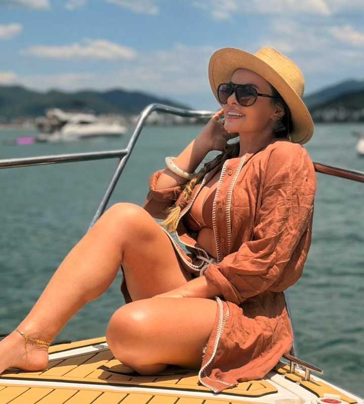 A empresária Jady Ferreira comemorou seu aniversário al mare no Norte da Ilha depois de ter ido até a China com o namorido Leandro Piazza, que em nome da sua 49 Educação fechou lá importantes acordos de cooperação internacional. (Foto: Acervo pessoal)