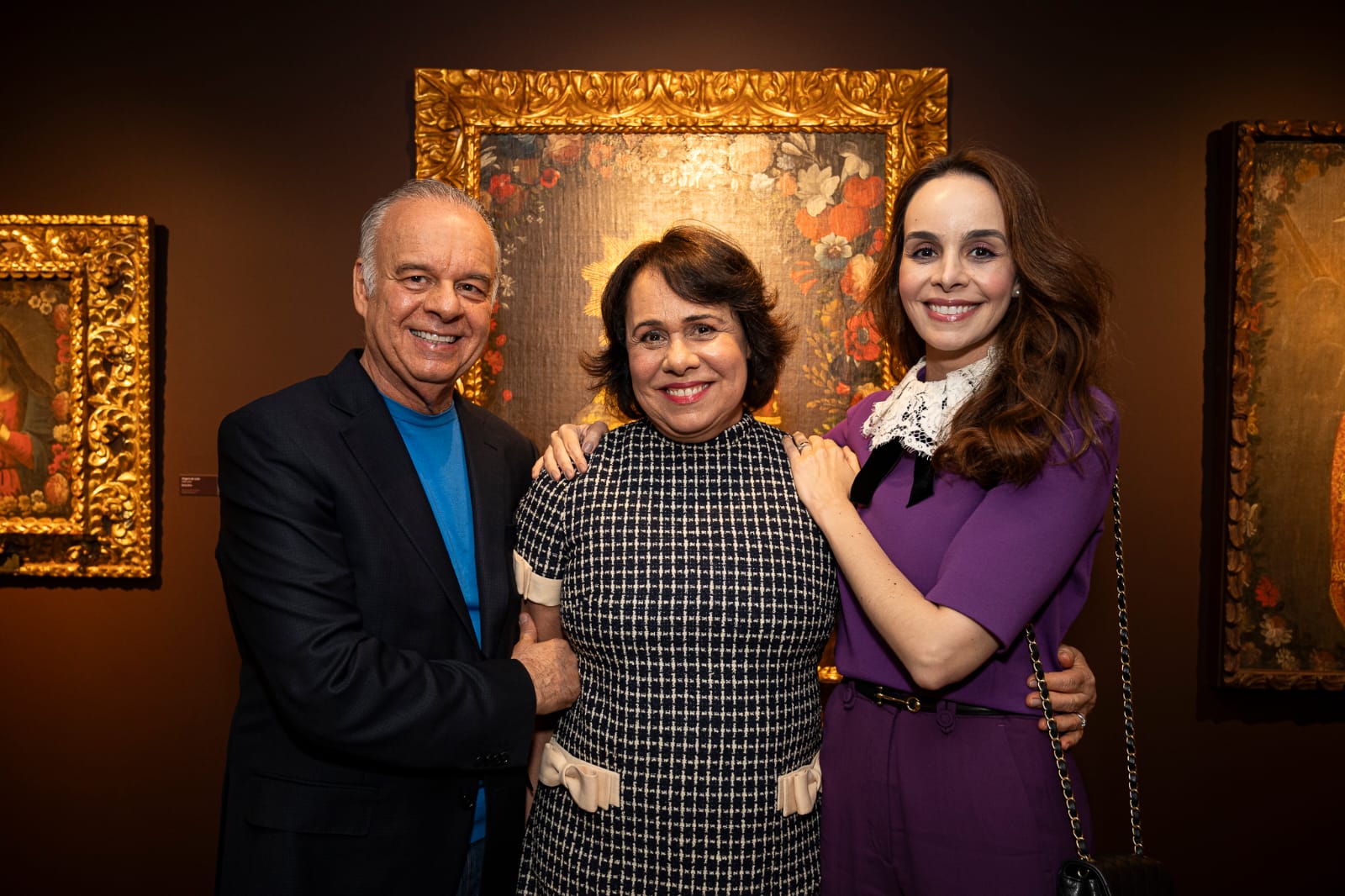 O casal Marcelo Collaço Paulo e Jeanine Gondin Paulo com a filha, a médica Gabriela Gondin Paulo, na abertura da mostra “Céu e Terra dos Andes”, no Instituto Collaço Paulo – Centro de Arte e Educação. (Foto: Elisa Imperial)