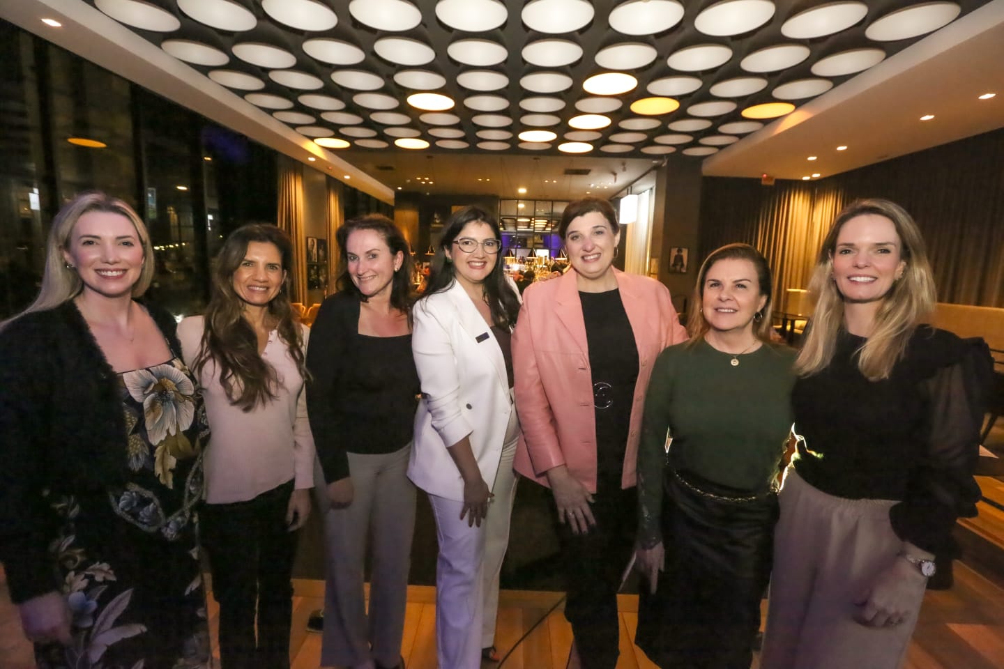 O Hospital de Olhos Florianópolis (HOF) e a ZEISS Vision Center by Óptica Referência promoveram um evento exclusivo que reuniu profissionais da área da oftalmologia pediátrica em uma noite dedicada à inovação e à troca de conhecimentos, no JazzInn. A iniciativa foi organizada por Diva Botelho Meneghini (ao centro, de branco), diretora da rede ZEISS Vision Center Florianópolis, e teve como grande atração a palestra da médica Eliane Cardoso Reis (à dir. de Diva), renomada especialista em oftalmologia pediátrica, que apresentou os benefícios das lentes ZEISS MyoCare — uma inovação desenvolvida para auxiliar no controle da progressão da miopia em crianças. (Foto: Darline e Angelo Fotografia)
