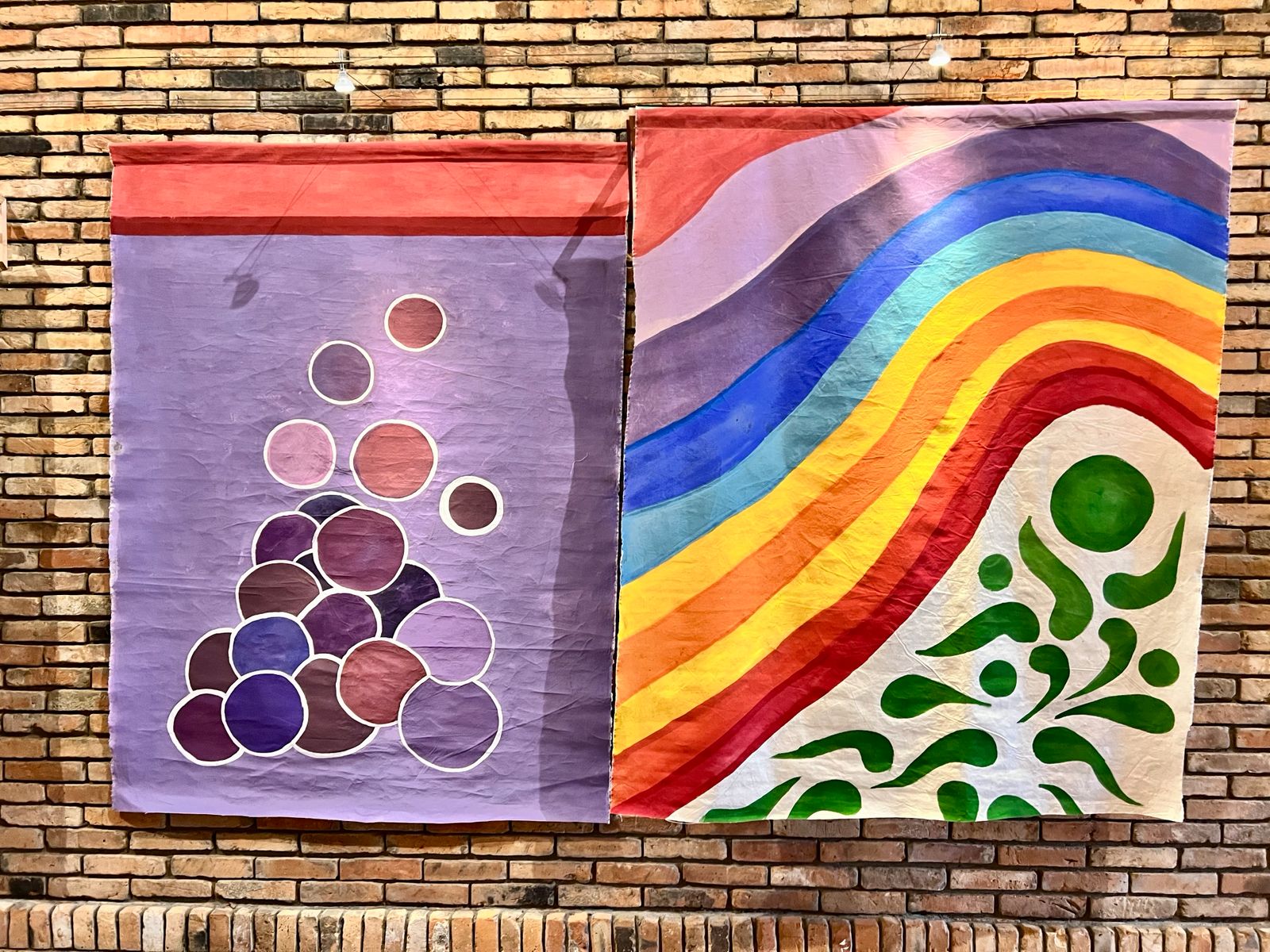 Essa textura (no quadro abaixo) representa os verdes, os galhos que eles (turmas de escolas) usam na montagem dos tapetes. O desenho da uva que eu fiz em homenagem ao vinho que é usado na Eucaristia.