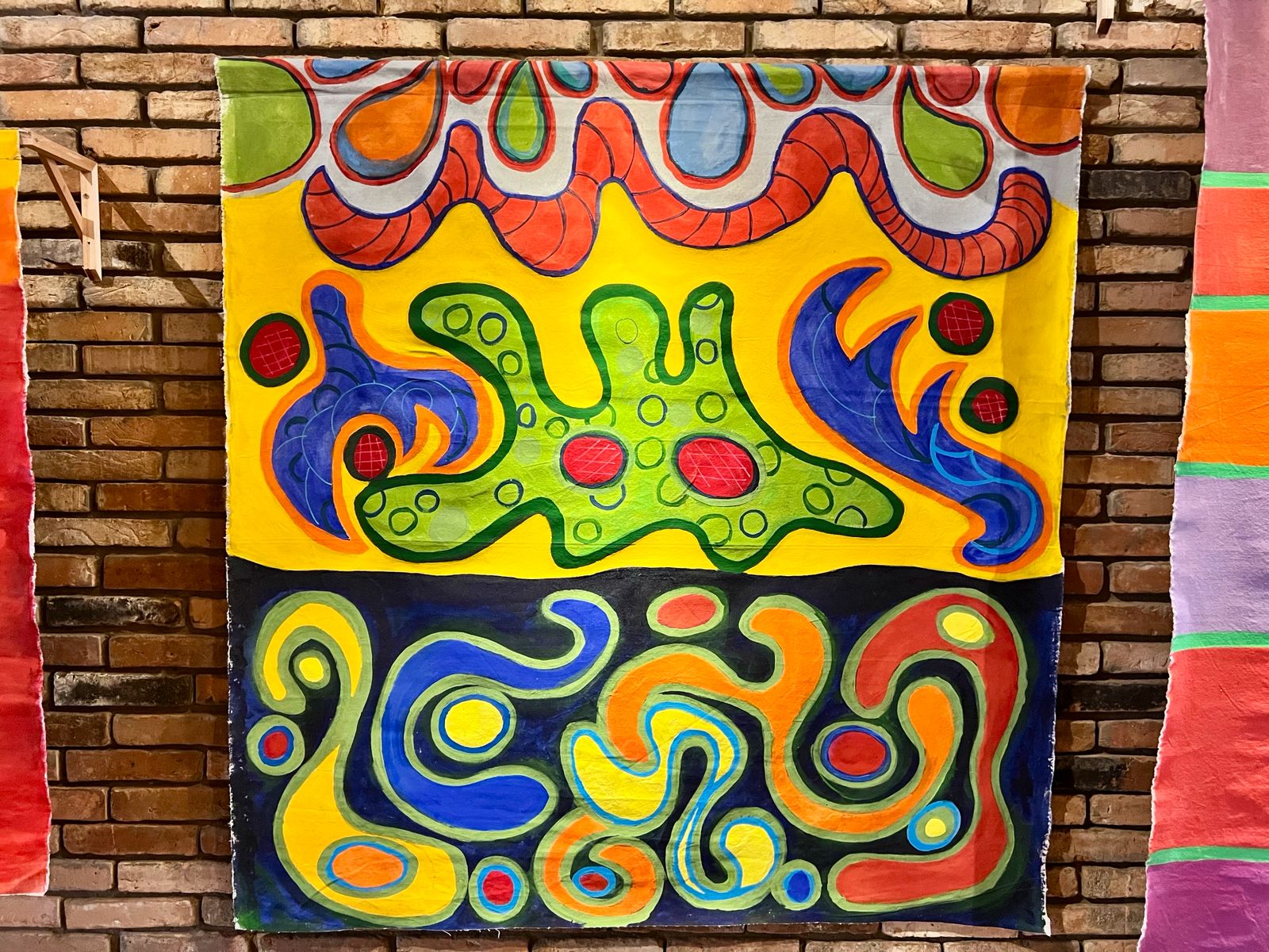 Então, eu chamo aquilo de abstrato, porque é como se aqui todo mundo tivesse pisado e daí não vai mais ficar quadrado, vai ficar uma mistura. Vai ficar uma imagem abstrata. Então, faz parte do meu plano nas próximas pinturas, pintar o abstrato, pois fica muito bonito.