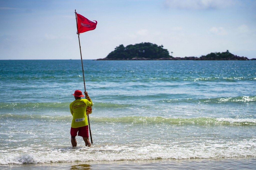 Em praias com presença de guarda-vidas, as áreas com corrente de retorno são sinalizadas com bandeiras vermelhas, indicando locais impróprios para banho. A orientação é respeitar sempre essas demarcações.
