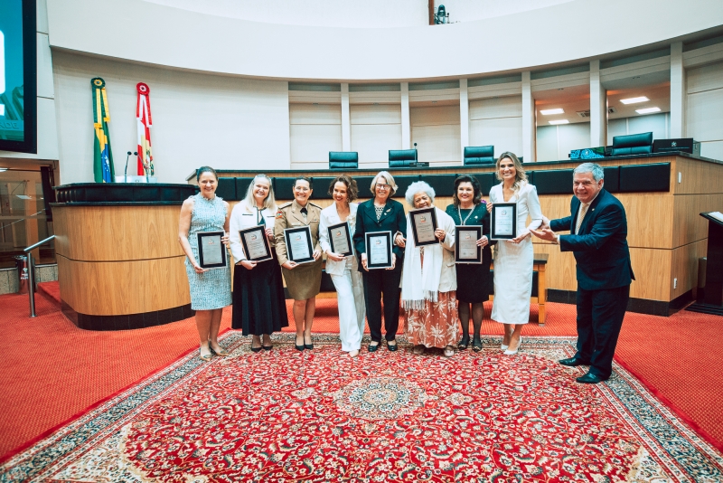 Oito mulheres consideradas referências para Santa Catarina foram homenageadas pela Assembleia Legislativa (Alesc) na noite de segunda-feira (6), em sessão especial realizada no Plenário Deputado Osni Régis. A solenidade foi presidida pelo deputado Mário Motta (PSD), proponente da homenagem.
