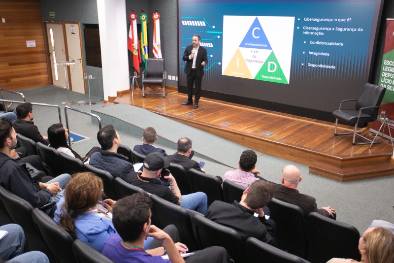 Esse foi o tema do seminário de prevenção a golpes e fraudes, realizado na segunda-feira (20), no Plenarinho Paulo Stuart Wright, para servidores, funcionários terceirizados e estagiários da Assembleia Legislativa, com palestras do delegado Luiz Felipe Rosado, da Delegacia de Repressão aos Crimes de Informática da Deic, e do investigador de crimes cibernéticos Elias Edenis de Oliveira.