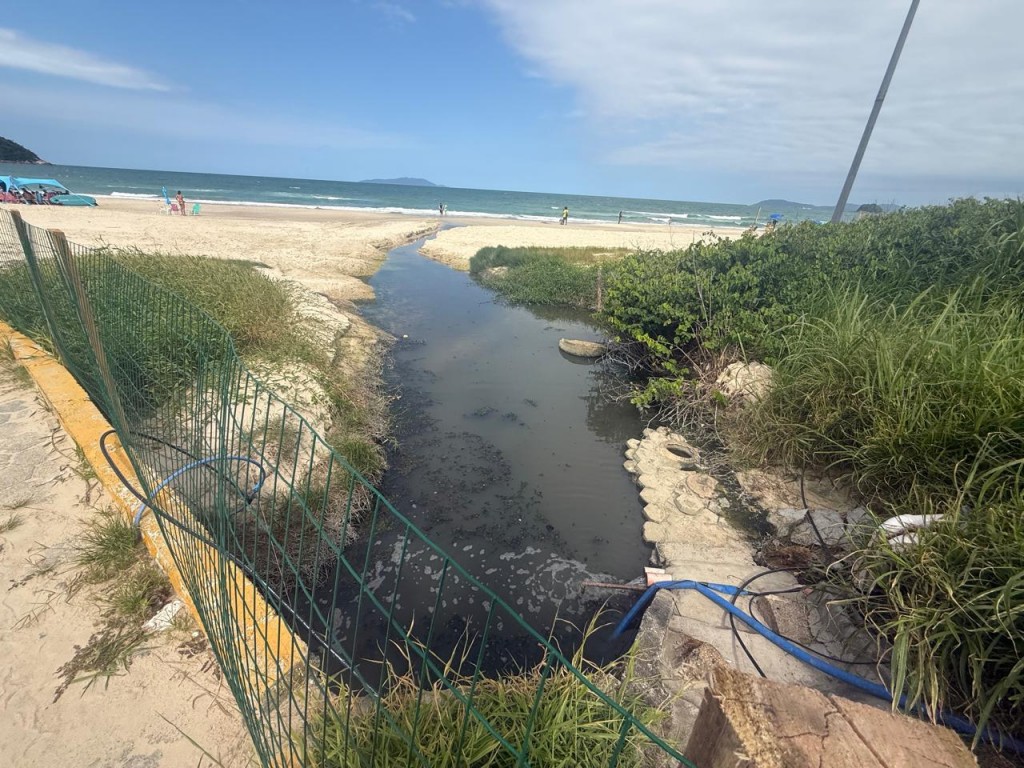 A Praia de Palmas, em Governador Celso Ramos, mancha relatório estadual