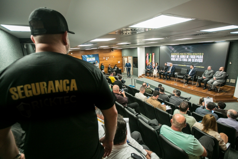 Participantes de audiência pública realizada na tarde desta segunda-feira (22), na Alesc, defenderam o uso de armamento por vigilantes privados fora do horário de serviço. O assunto foi discutido em encontro promovido pela Comissão de Segurança Pública do Parlamento catarinense, a pedido do deputado Sargento Lima (PL).