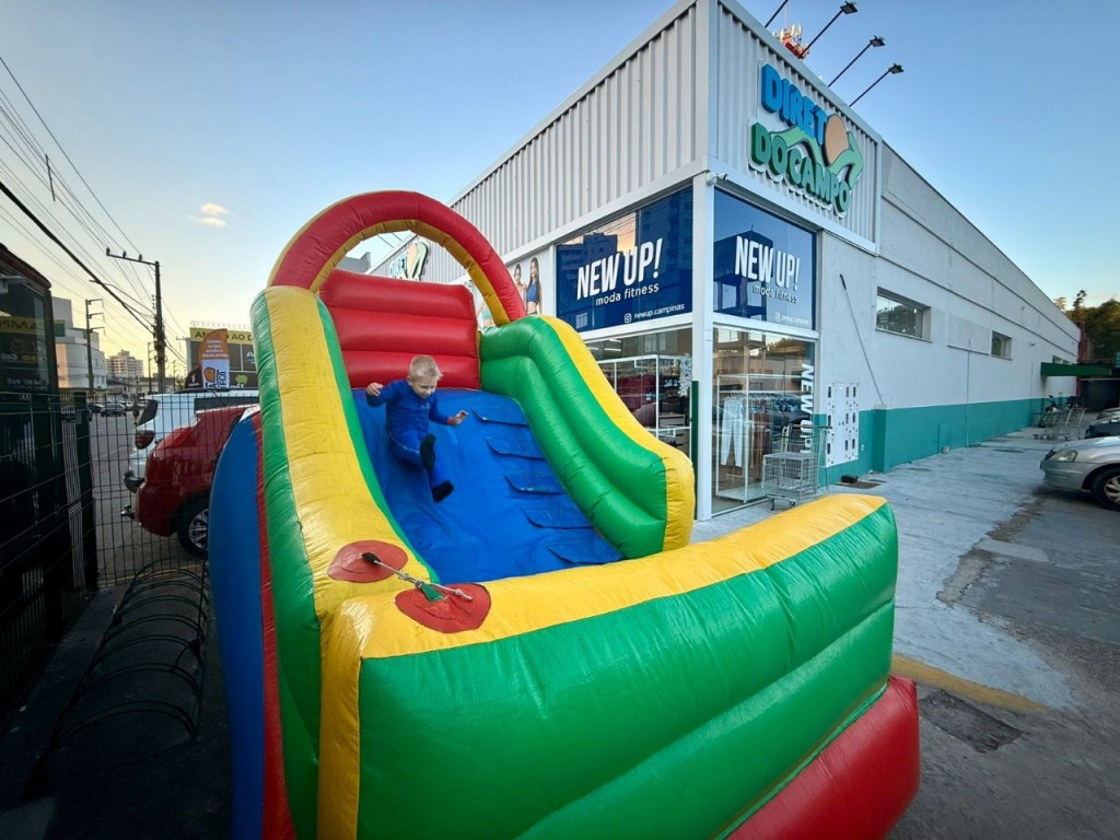 Com a chegada das férias escolares, nada melhor do que garantir momentos de lazer para as crianças. Pensando nisso, a nova unidade do Direto do Campo, que fica no bairro Campinas, em São José, vai oferecer uma divertida opção de recreação gratuita: um tobogã inflável, exclusivo para crianças de até 10 anos. O brinquedo estará disponível entre os dias 11 e 13 de julho.