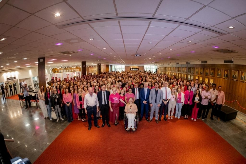 A Alesc realizou na tarde de terça-feira (21) um ato em alusão ao Outubro Rosa, mês dedicado à realização de ações preventivas voltadas à saúde da mulher, especialmente à prevenção do câncer de mama. Deputados e servidores se reuniram no hall do Palácio Barriga Verde para uma foto com as cores da campanha.