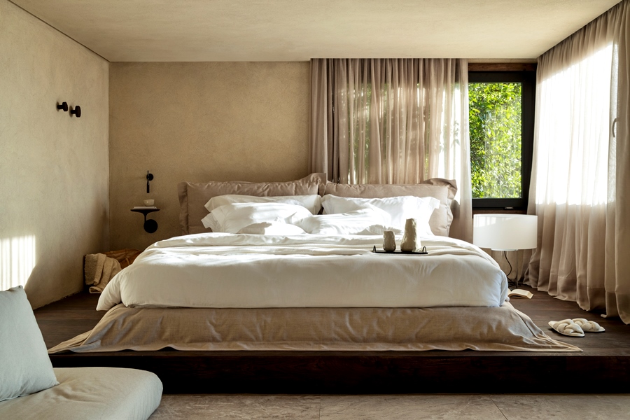 Conforto, elegância e aconchego estão impressos em cada escolha da composição da Suíte Pele, ambiente assinado pela arquiteta Andressa Venturini para a CASACOR Santa Catarina - Florianópolis 2023, em cartaz até o dia 29 de outubro no antigo Hotel Maria do Mar, na capital catarinense.