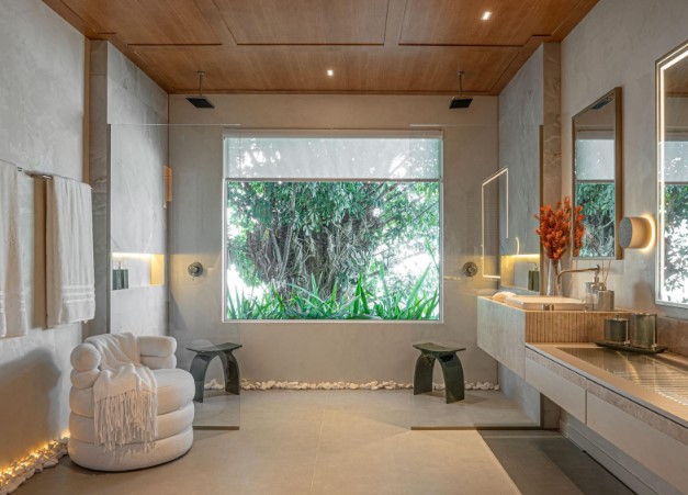 O projeto une design biofílico, materiais naturais e iluminação cênica para criar atmosferas que estimulam o bem-estar. Elementos em pedra, madeira e fibras compõem uma paleta terrosa, orgânica e atemporal. Cada detalhe foi pensado para proporcionar conforto e acessibilidade, reafirmando que o design pode — e deve — ser inclusivo e sensível.