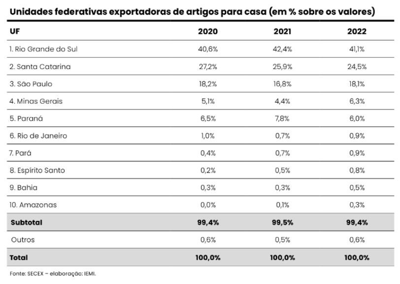 Confira na tabela acima, as unidades federativas exportadoras de artigos para casa