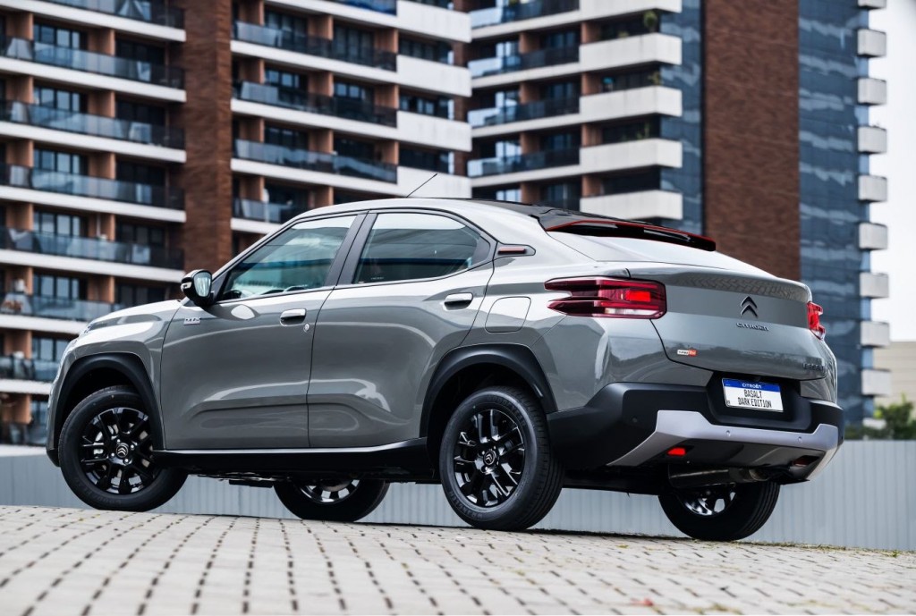 A Citroën apresenta a nova versão topo de gama do Citroën Basalt, o Dark Edition, desenvolvida especialmente para o público brasileiro. A novidade combina acabamento escurecido, detalhes esportivos em vermelho Andre Red e uma série de diferenciais visuais que elevam o estilo do SUV Coupé mais acessível da marca. Entre os destaques externos estão rodas de liga leve de 16” pintadas de preto, pedaleira esportiva, soleiras personalizadas, emblema Dark Edition e duplo chevron escurecidos. O aerofólio traseiro traz detalhes em vermelho, homenagem a André Citroën, fundador da marca.