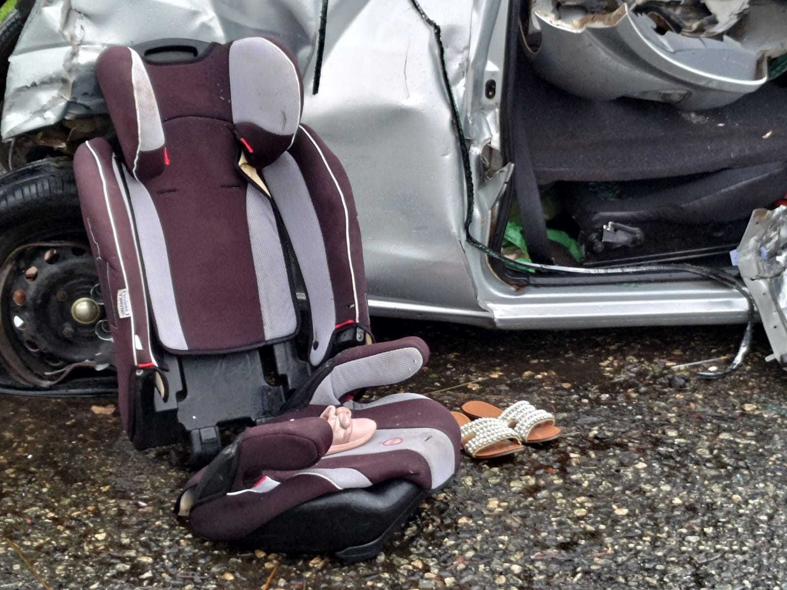 No entanto, uma menina de dois anos e meio, que viajava no banco traseiro, saiu praticamente ilesa da colisão graças ao cuidado dos pais. Ela estava devidamente presa em uma cadeirinha. Apesar do susto, sofreu apenas escoriações muito leves. Caso estivesse solta, a criança seria violentamente projetada para todos os lados, e certamente sofreria graves ferimentos.