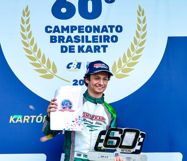 Piloto de 17 anos supera campeões internacionais e celebra título na categoria mais veloz do kartismo