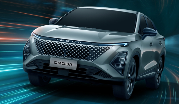 O design da grade integrada é um destaque à parte: cria uma estética futurista – marca registrada dos modelos Omoda –, combinada à matriz de pontos em gradiente. Esta combinação proporciona um visual com efeito tridimensional. Na frente, o primeiro modelo 100% híbrido da O&J a ser oferecido no território nacional é realçado pelos DRLs em forma de lâmina, que transmitem a sensação de modernidade.