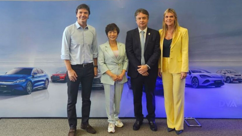 O encontro, que também recebeu a imprensa local no LK Design Hotel, no Centro da capital catarinense, foi acompanhado por Alexandre Baldy, Presidente do Conselho da BYD Brasil, e pelo empresário catarinense Paulo Toniolo Júnior, diretor do Grupo DVA.