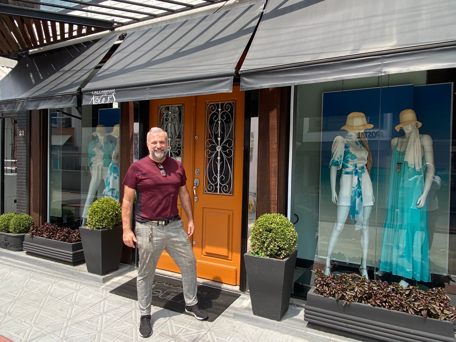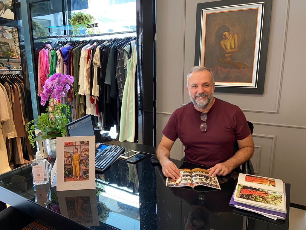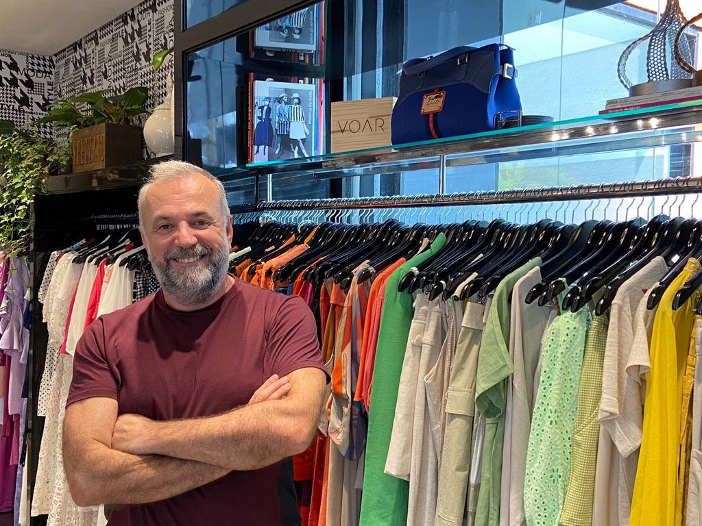 Fernando Antônio de Souza em frente à Calcanhar de Aquiles, referência de moda Há 28 anos em Florianópolis