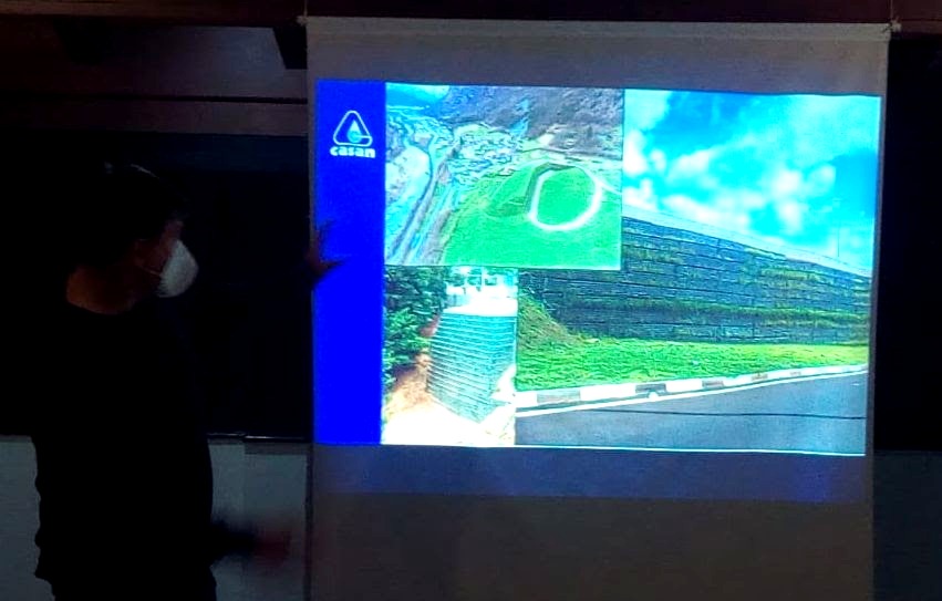 Os engenheiros Joel Horstmann, Alexandre Trevisan e Douglas Zimmermann demostraram como foi realizado o reforço no talude intermediário que separa provisoriamente as duas lagoas artificiais. Também falaram sobre os resultados da instalação do sistema emergencial de bombeamento executado em menos de 24 horas, após a autorização, devido à previsão de chuvas intensas para o fim de semana passado.