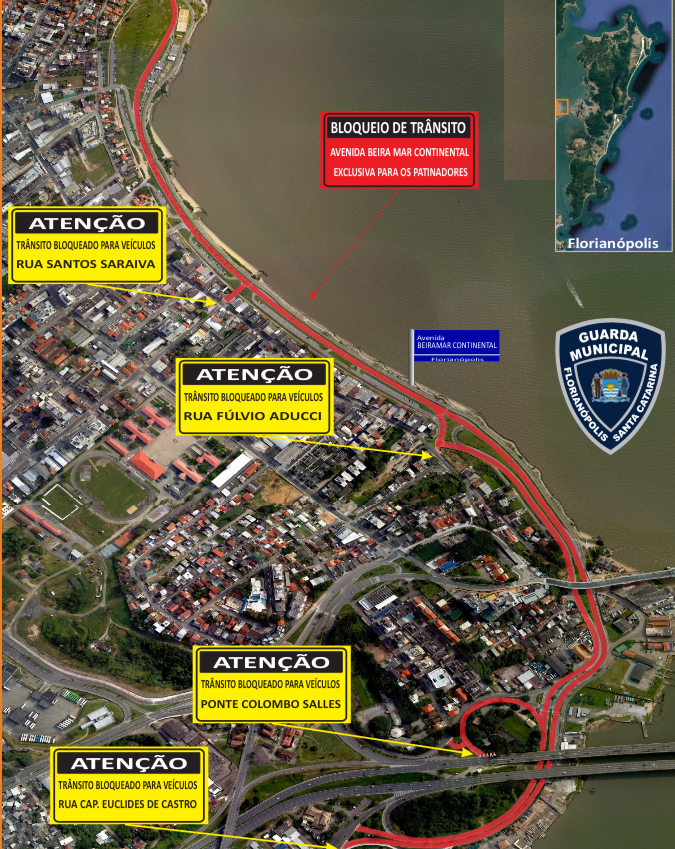 Já na Inline Marathon, a Beira-mar Continental será utilizada e o trânsito na avenida estará bloqueado. A primeira saída da Ponte Colombo Salles estará com seu acesso fechado. As ruas Santos Saraiva, Fúlvio Aducci e Capitão Euclides de Castro estarão fechadas em seus trechos que acessam o evento.