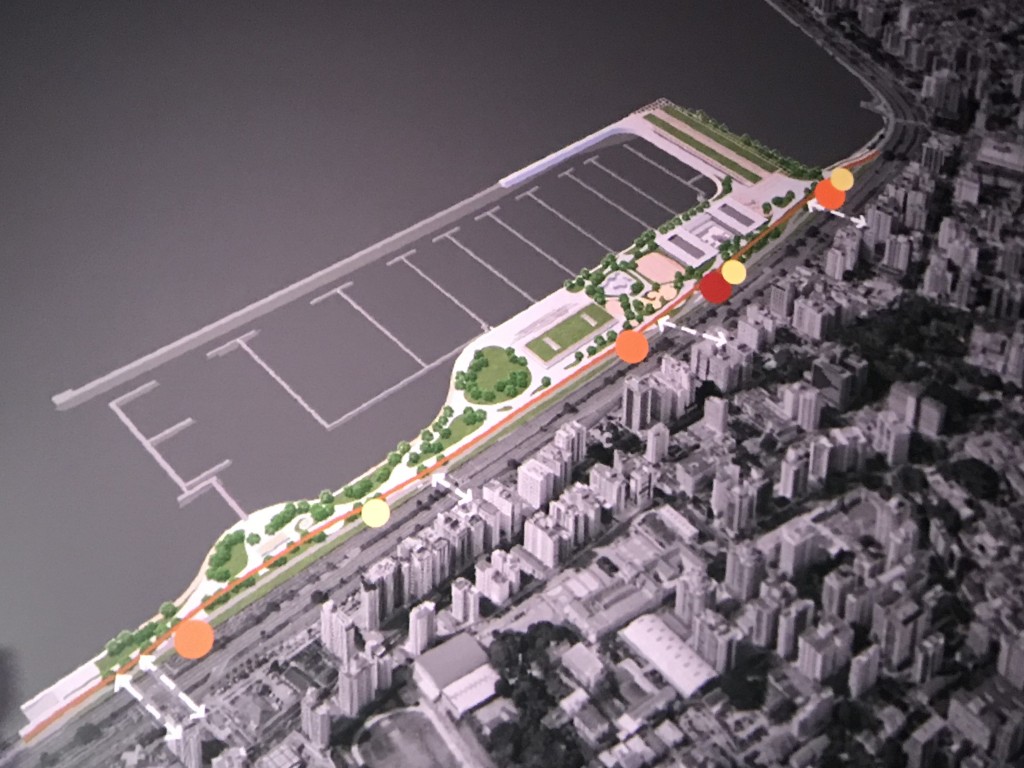 O projeto prevê um parque urbano público, de convivência, com espaço para a realização de eventos, quiosques, área de lazer e para práticas esportivas diversas e que envolvam o mar, além de estacionamento de veículos e áreas comerciais. Está prevista também a integração de modais através da destinação de área para futura instalação de transporte náutico.