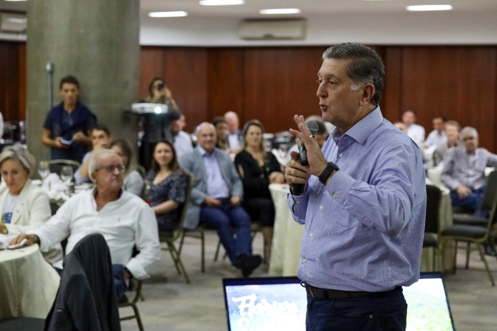 O almoço contou com a participação de cerca de 130 pessoas, entre empresários, profissionais liberais, formadores de opinião, professores e dirigentes de entidades comunitárias e associativas, e serviu para Topázio mostrar o que é a Agenda 2022 para a cidade, com obras, ações e medidas a serem realizadas. O evento foi aberto pela coordenadora geral do Floripa Sustentável Zena Becker, que enalteceu a união e a liderança que o movimento tem hoje na Capital. “Foram anos de luta para chegarmos até aqui e o encontro de hoje é a retomada desse tipo de atividade que não ocorria presencialmente desde o início da pandemia. Para transformar Florianópolis no que ela merece ser, é necessária a revisão imediata do Plano Diretor – porque não há como planejar o futuro da cidade sem definir para onde ela quer ir, pode ir e para onde deve ir”.