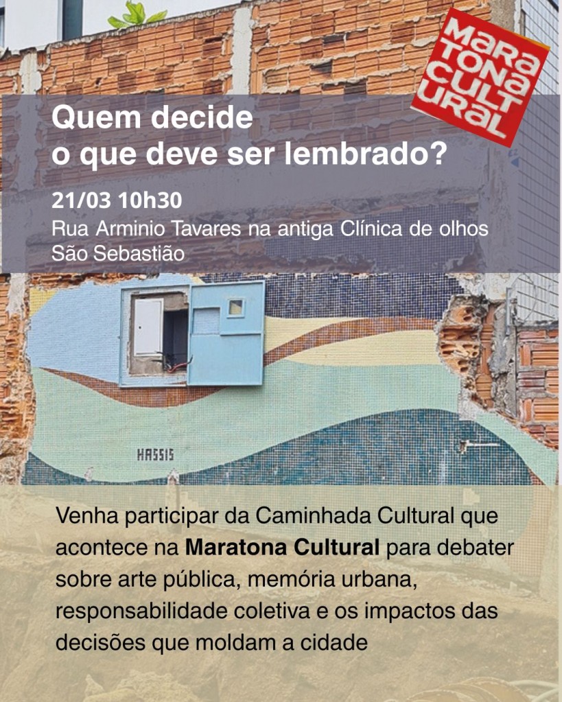 A pergunta que guia a caminhada cultural proposta para a Maratona Cultural deste ano é direta, mas carregada de camadas: quem decide o que deve ser lembrado em uma cidade?