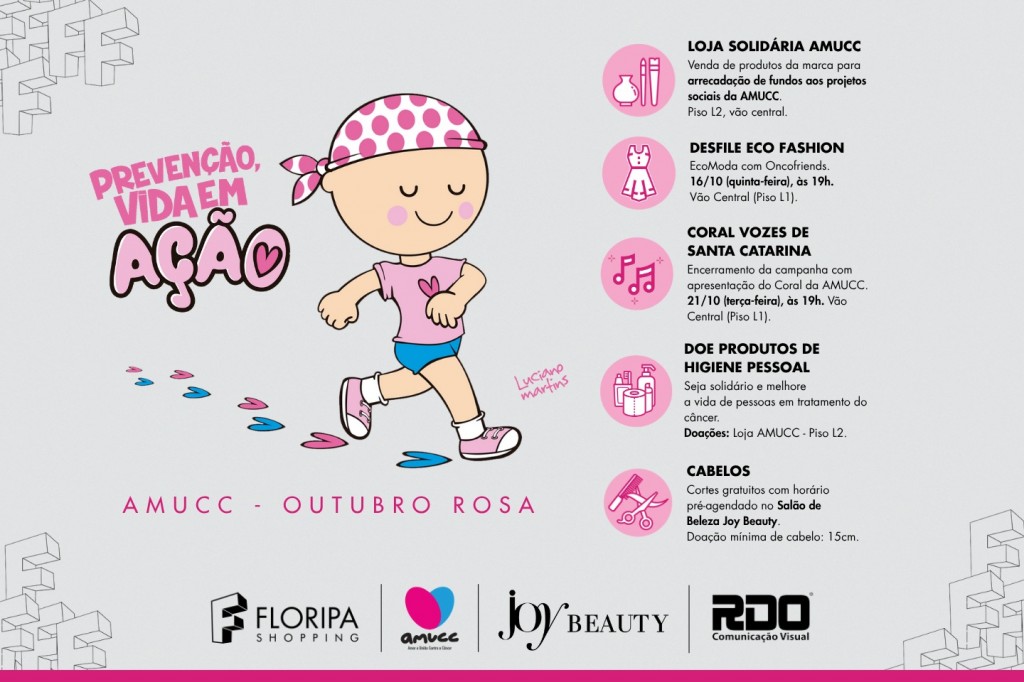 Até 31/10, o Floripa Shopping realiza ações solidárias, culturais e de autocuidado em parceria com a AMUCC