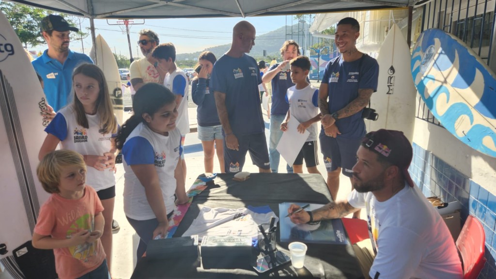 O surfista fez questão de parabenizar o trabalho realizado pelo Programa Bairro Educador em especial ao prefeito Topázio Neto por criar e implantar o programa em diversas comunidades de Floripa. “Me comprometo a divulgar o Bairro Educador porque é um programa maneiro. Aqui as crianças estão tendo uma oportunidade, a mesma que eu tive há 30 anos atrás, quando naquela ocasião eu extrai o máximo de ensinamentos”, disse o campeão.