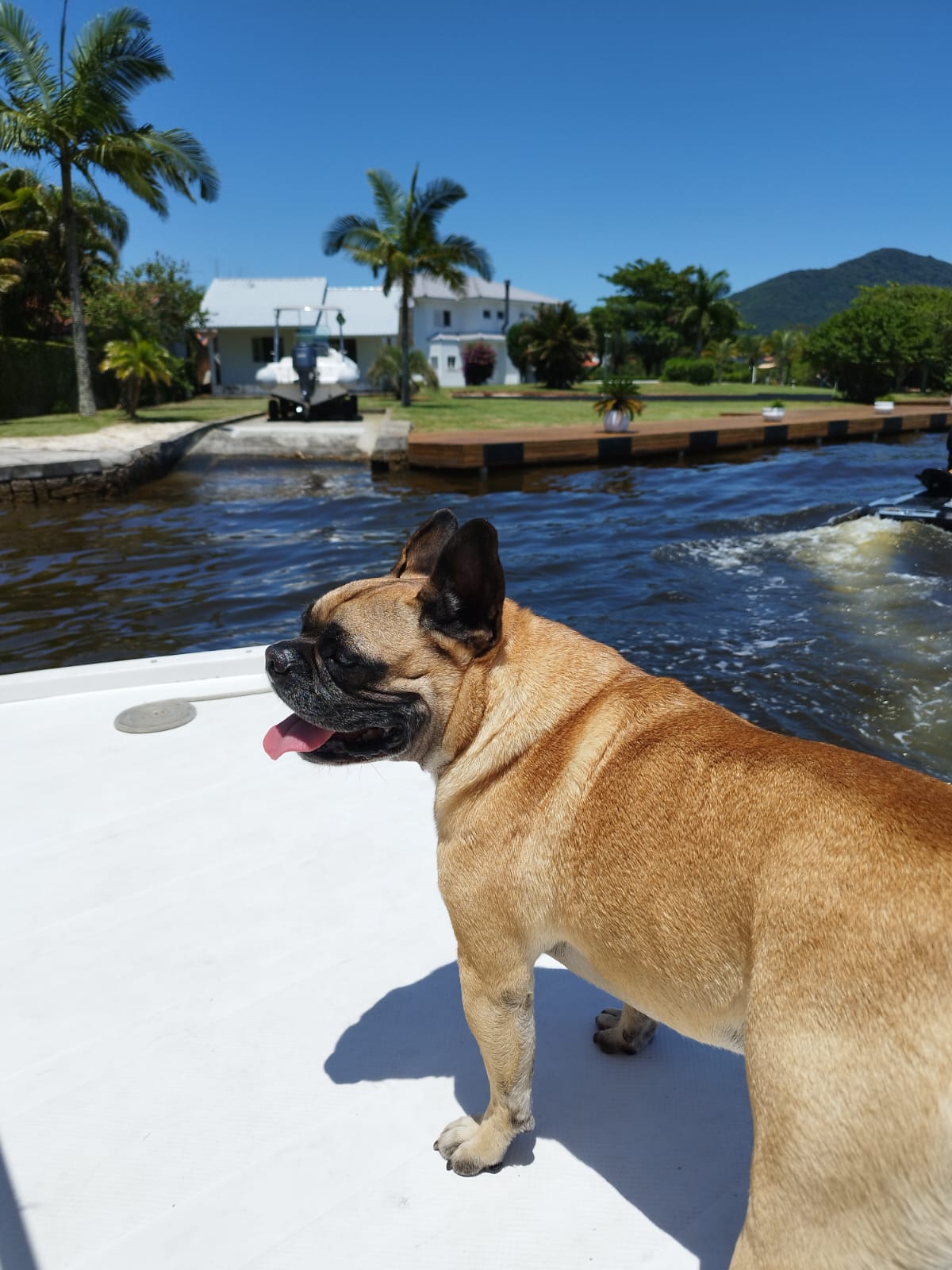 E para quem não abre mão de passear com o seu bichinho de estimação, o espaço é pet friendly e tem inclusive um “proeiro” de quatro patas. É o Chilli, que recebe a todos com muito carinho e atenção, e faz questão de ir na frente do catamarã, “vigiando” o passeio o tempo todo.
