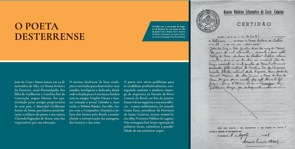 O local cumprirá uma tripla função: será um espaço para lançamentos de livros e sessões de autógrafos, terá obras de escritores catarinenses à disposição para leitura no próprio ambiente e contará, evidentemente, a história de Cruz e Sousa.
