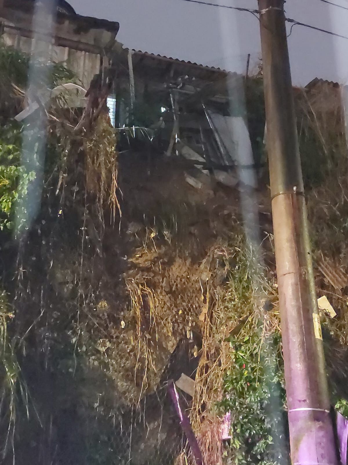 Um deslizamento de vegetação superficial e parte do material de uma construção que fica no topo da encosta na comunidade do Morro da Caixa (Foto: Divulgação PMF)