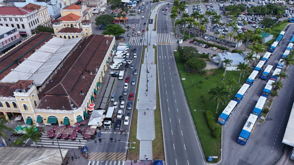 Assim, ganhou piso de granito nas duas travessias de pedestres (em frente ao Camelódromo e entre o Mercado Público e a Praça do Largo da Alfândega), e deck com bancos para contemplação e descanso paralelo ao que existe na praça em direção ao espelho d’água. Além de pavimento de concreto nos demais trechos e piso podotátil direcional e de alerta, e guia contornando canteiros, em atenção às normas de acessibilidade.