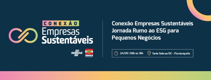 Organizado pelo Sebrae/SC e pela Secretaria do Meio Ambiente e Economia Verde (SEMAE), o Conexão Empresas Sustentáveis acontecerá no dia 24 de setembro, das 8h às 18h, no auditório do Sebrae em Florianópolis. O encontro visa conectar empresários catarinenses às melhores práticas em ESG (Ambiental, Social e Governança).