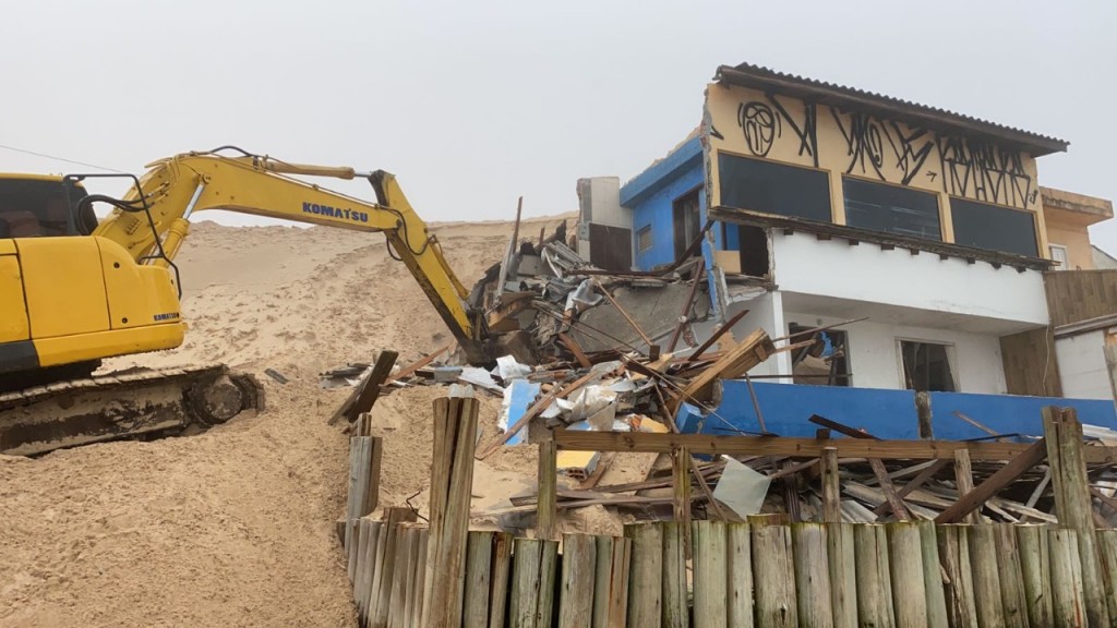 Em uma ação conjunta entre a Defesa Civil Municipal, Secretaria Municipal de Desenvolvimento Urbano e Comcap, a Prefeitura de Florianópolis realizou nesta sexta-feira, 20, a demolição total de duas das três edificações localizadas nas dunas da Praia dos Ingleses. As construções, sendo um restaurante, um chalé e uma casa, já haviam sido interditadas e condenadas pela Defesa Civil Municipal por conta do avanço das dunas, que comprometeu as estruturas e ocasionou risco de demolição. Duas das três construções foram demolidas hoje. Uma casa será demolida na segunda-feira, 23, finalizando a ação.