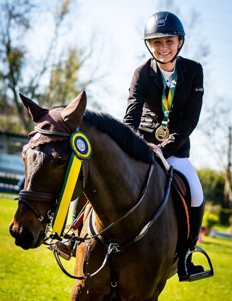 Colecionar títulos em importantes torneios de hipismo não é bem uma novidade na carreira da catarinense Gabrielle Berger, que iniciou aos oito anos de idade, em Florianópolis. Hoje, aos 20 anos, ela acaba de conquistar o 1º lugar em um importante campeonato nacional de hipismo, o Campeonato Brasileiro de Salto 2021, realizado no último fim de semana em Porto Alegre. No último domingo, 25, a final foi das mais disputadas, sendo decidida, por desempate, com a diferença de apenas 3 segundos. “Foram três intensos dias de competição, com quatro pistas e um desempate emocionante no final, que me garantiu o título”, comemora Gabrielle, a mais nova campeã brasileira na categoria “Jovens cavaleiros top 1,30”.