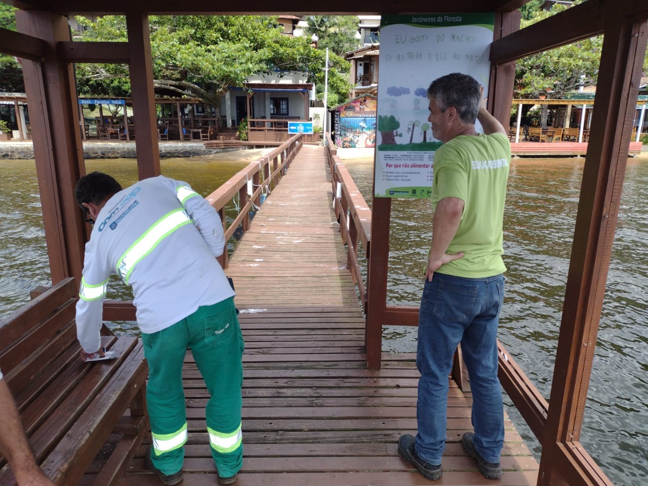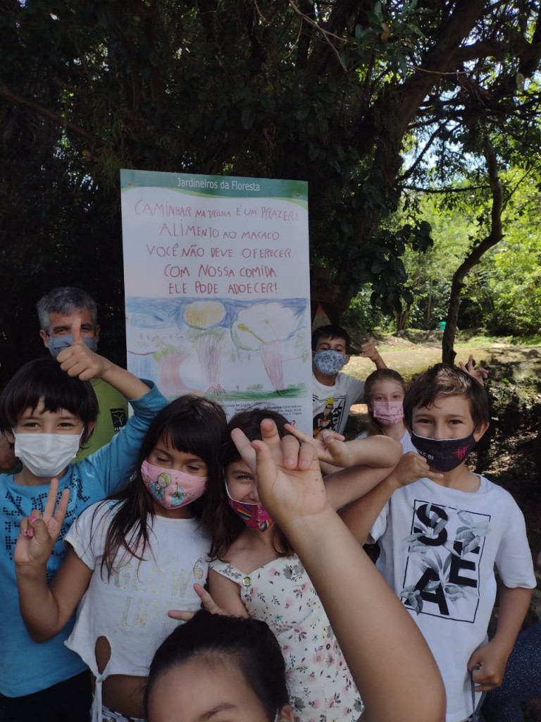 A Fundação Municipal do Meio Ambiente (Floram), em parceria com o Instituto do Meio Ambiente (IMA), Paerv, Ufsc, Projeto Fauna Floripa, Instituto Espaço Silvestre, Coperbarcos e Associação dos Restaurantes, explicaram para as crianças a importância da preservação e cuidados com os animais silvestres. A ação incentivou a autonomia dos estudantes através da atividade de ilustração de placas que serão grandes instrumentos de educação ambiental. Algumas das frases feitas pelos alunos foram: “Preste atenção, macaco não come a nossa alimentação”, “Eu gosto do macaco, eu na trilha e ele no mato”, “Caminhar na trilha é um prazer! Alimento ao macaco você não deve oferecer. Com nossa comida ele pode adoecer!”.