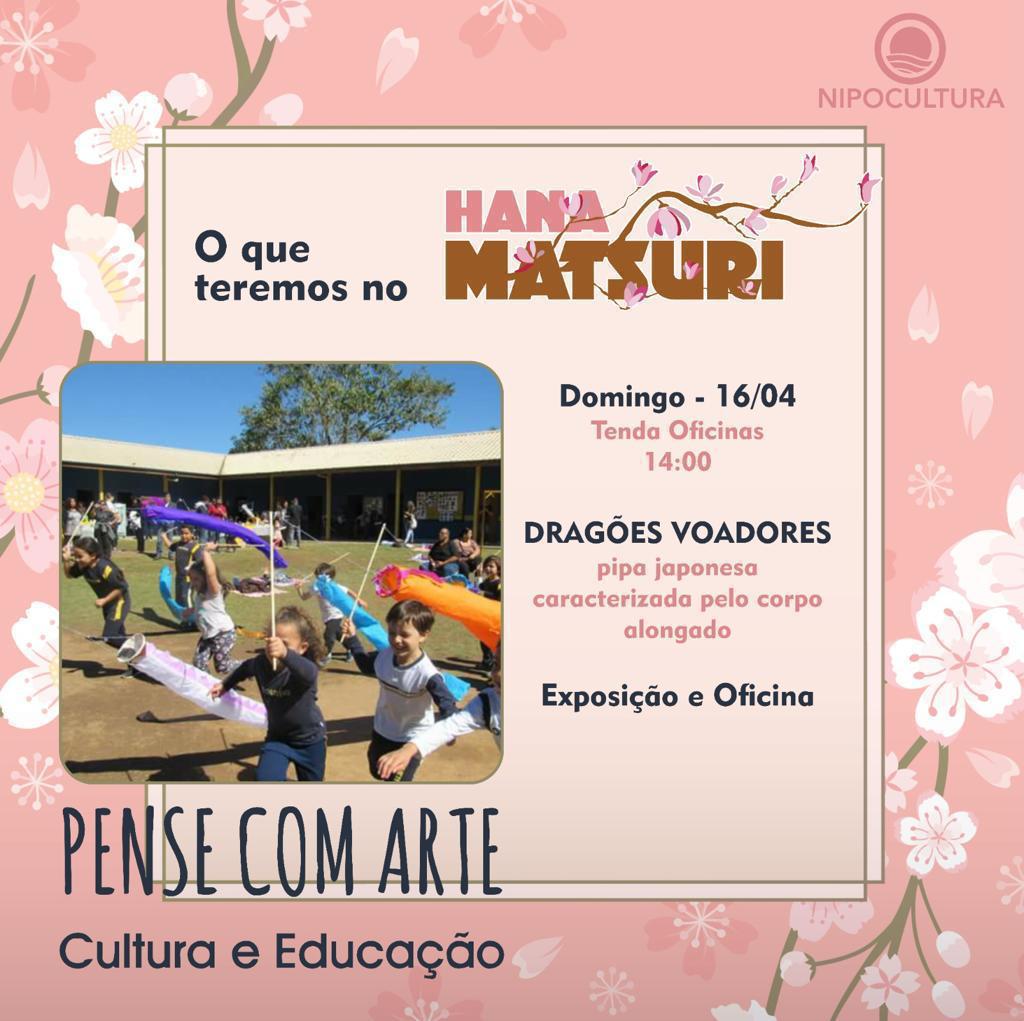 O festival Hana Matsuri começa às 10 h e se estende até as 18 h deste domingo, e terá ampla participação da colônia japonesa da Capital. Entre as atrações deste domingo estão os Dragões Voadores, que são pipas japonesas de corpo alongado puxadas por uma vareta, na mão das crianças.